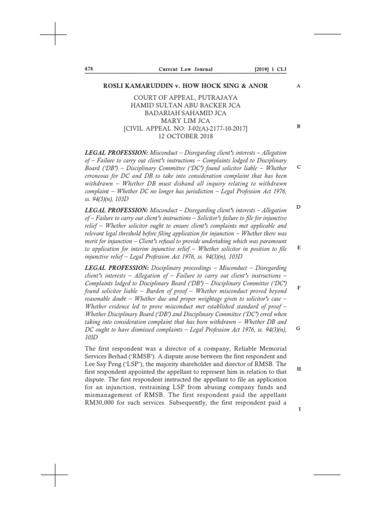 Rosli Kamaruddin V How Hock Sing Anor Burden Of Proof Law Complaint